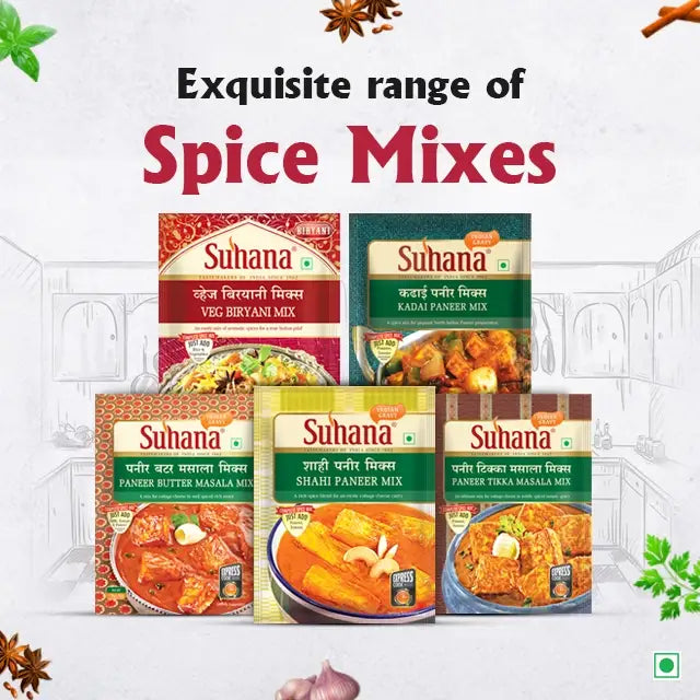 More sizes availableShahi' implies the royal. Suhana Shahi Paneer Mix is a blend of flavourful spices which impart a distinctive aroma and taste to this cashew and tomato-based cottage cheese gravy dish. A "Mughal favorite" with our Suhana Shahi Paneer Masala Spice Mix. Ingredients Required:- 2...- From MRP ₹ 25.00