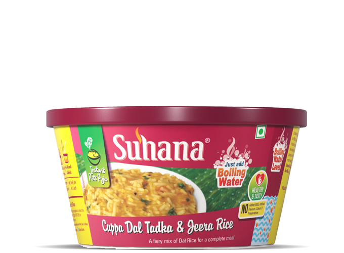 The combination of Tempered Dal and Rice is an undivided part of the Indian household. This zesty yet simple meal fulfills your appetite in no time. Seize this mouth-watering treat with Suhana ready-to-eat Dal Tadka And Jeera Rice Mix and relish!